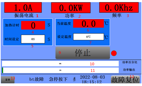 12、故障復(fù)位—— 設(shè)備故障時(shí),按下此按鈕 故障清除