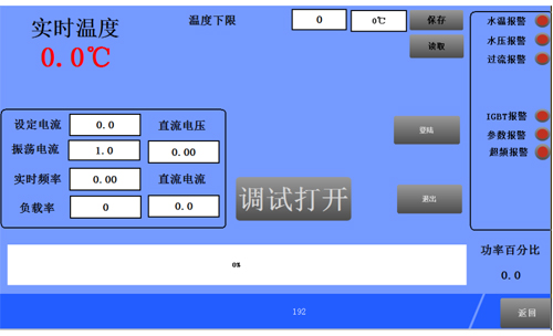 本電源有負(fù)載自適應(yīng)功能,在不上主電狀態(tài)下,調(diào)整好負(fù)載之后,在電源內(nèi)控模式下加熱,上位顯示屏自動(dòng)給出負(fù)載的匹配狀態(tài)及諧振頻率供用戶參考調(diào)試。